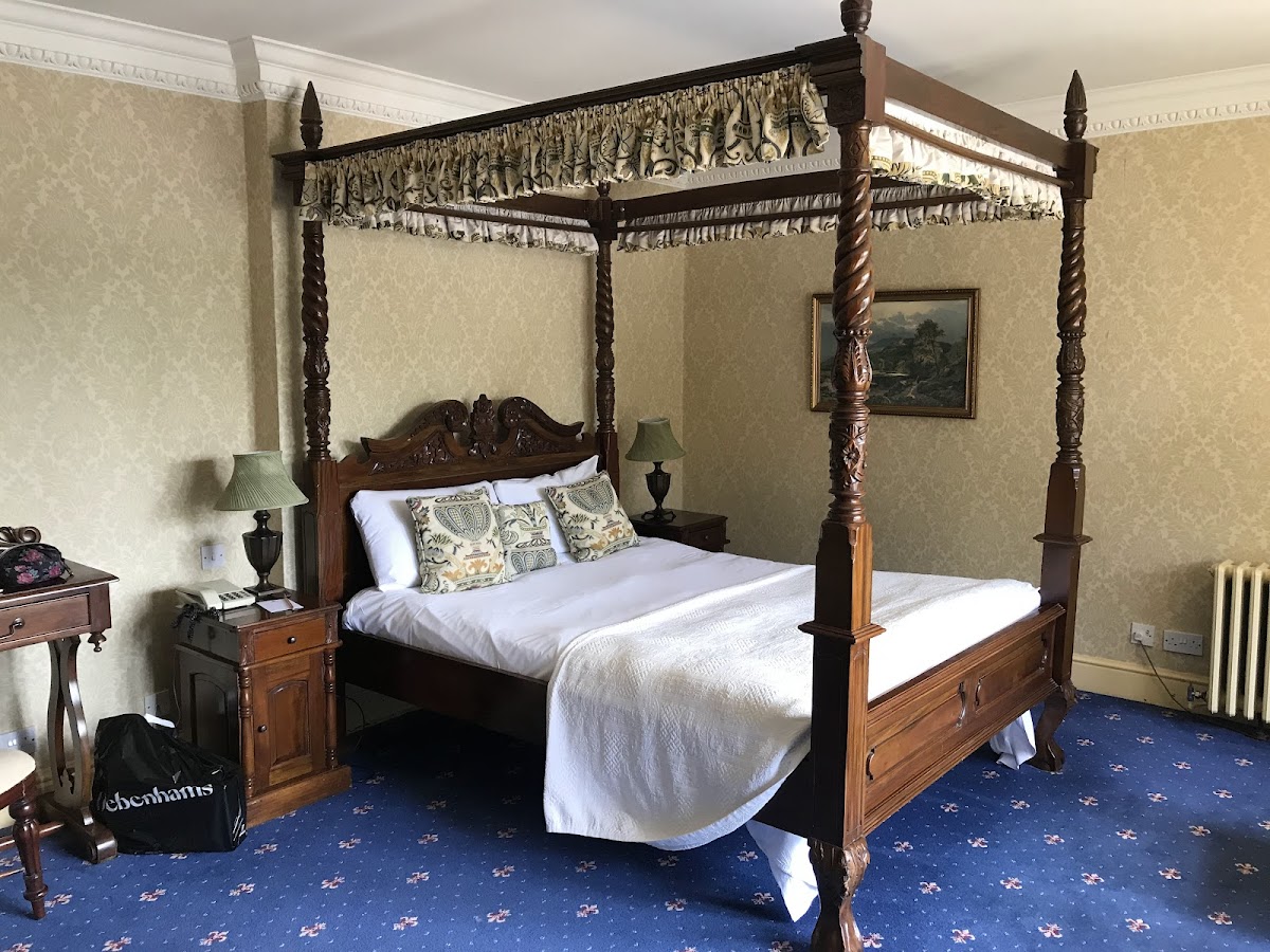 What a lovely hotel this is. Just off the M4 but very quiet and surrounded by greenery. Spectacular building and it's peppered with portraits throughout. If you're a fan of stuffed animal heads, then the bar is right up your street. We had a four poster bed which was really comfortable (but sounded like a bird crying whenever you moved), and came with a free discarded sock left over from a previous guest on top of the canopy. Which was a treat. The bathroom was amazing, it was worth the price just for that. We had a good view of the landscape and enjoyed a walk round the grounds for a bit. The only issue was the non-drinkable tap water, which is understandable with a building of this nature, and we didn't spot the bottled water downstairs until the next morning (our fault for not asking). Breakfast was a tasty buffet which is always a winner. We had a very enjoyable stay and we're looking forward to finding a reason to spend more time here soon.